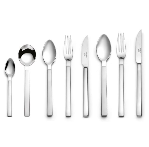 This modern cutlery features a half moon detail on the handles. An elegant style, its slender gauge and minimal design make this an attractive accompaniment to the table.