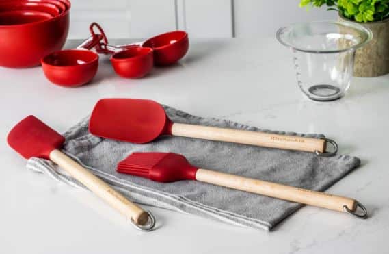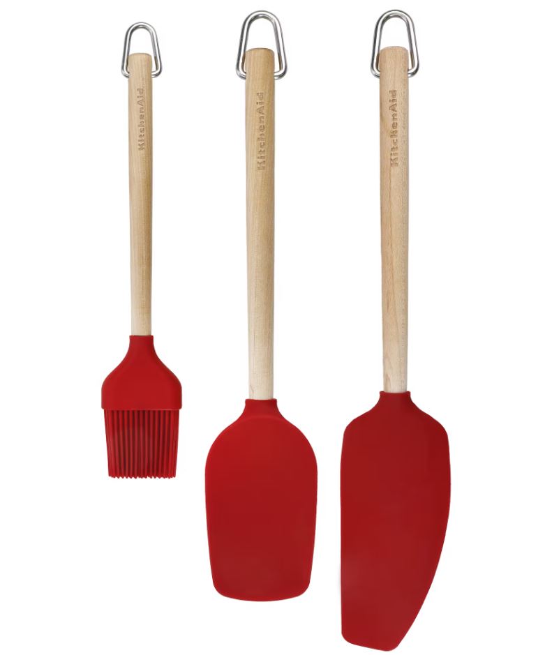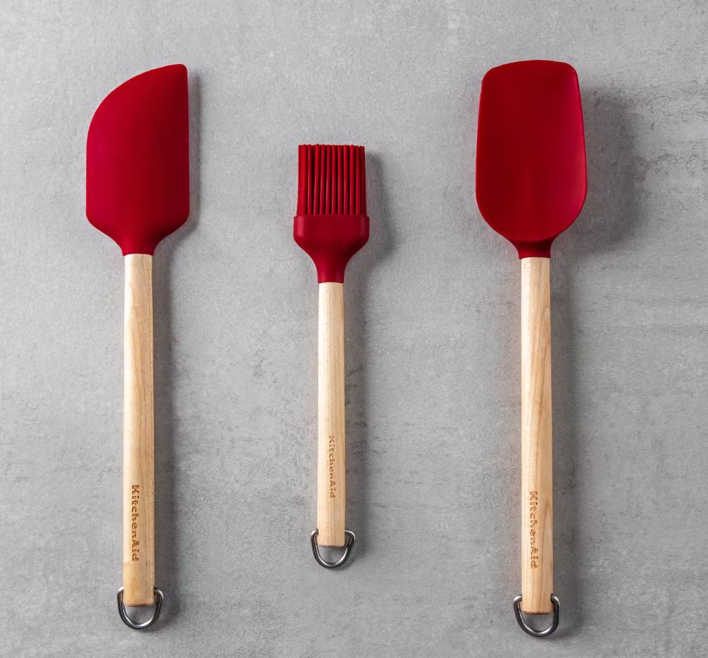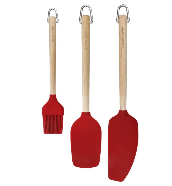 KitchenAid 3-Piece Birchwood Baking Set Red with Pastry Brush, Spoon Spatula, and Mixer Spatula